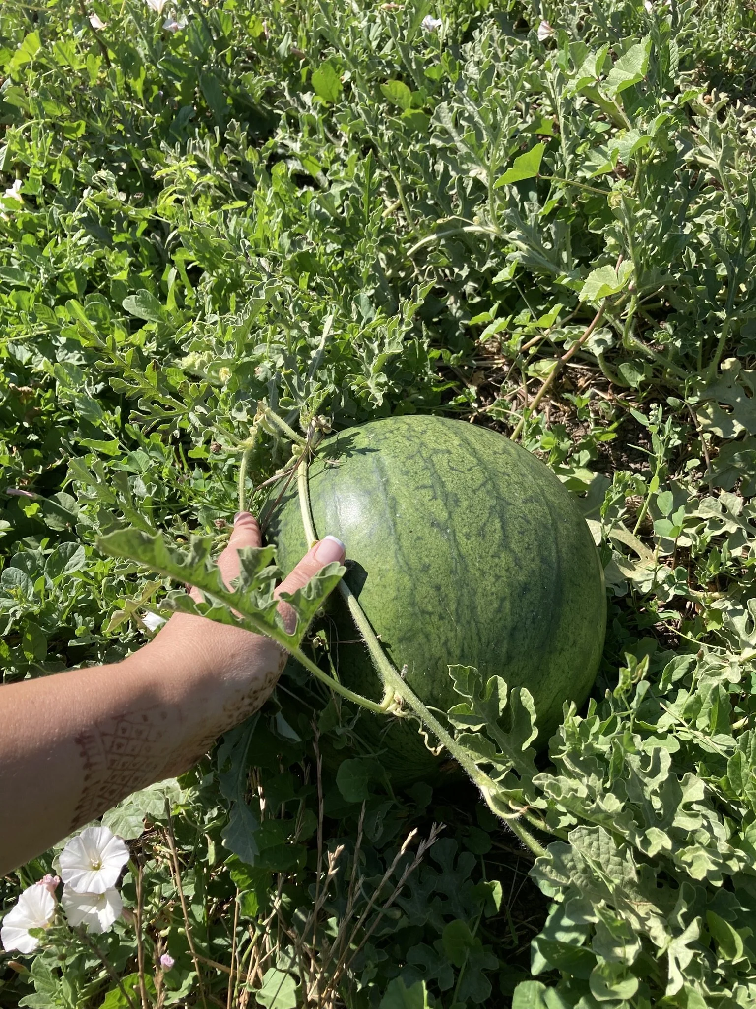We received these seeds from the Palestine Heirloom Seed Library (PHSL) founded by Vivien Sansour. Vivien Sansour was able to bring this almost extinct Palestinian watermelon back to life, and it is now being grown in many places around the world. For more about this plant, you can visit the PHSL site (highly recommend reading more!).